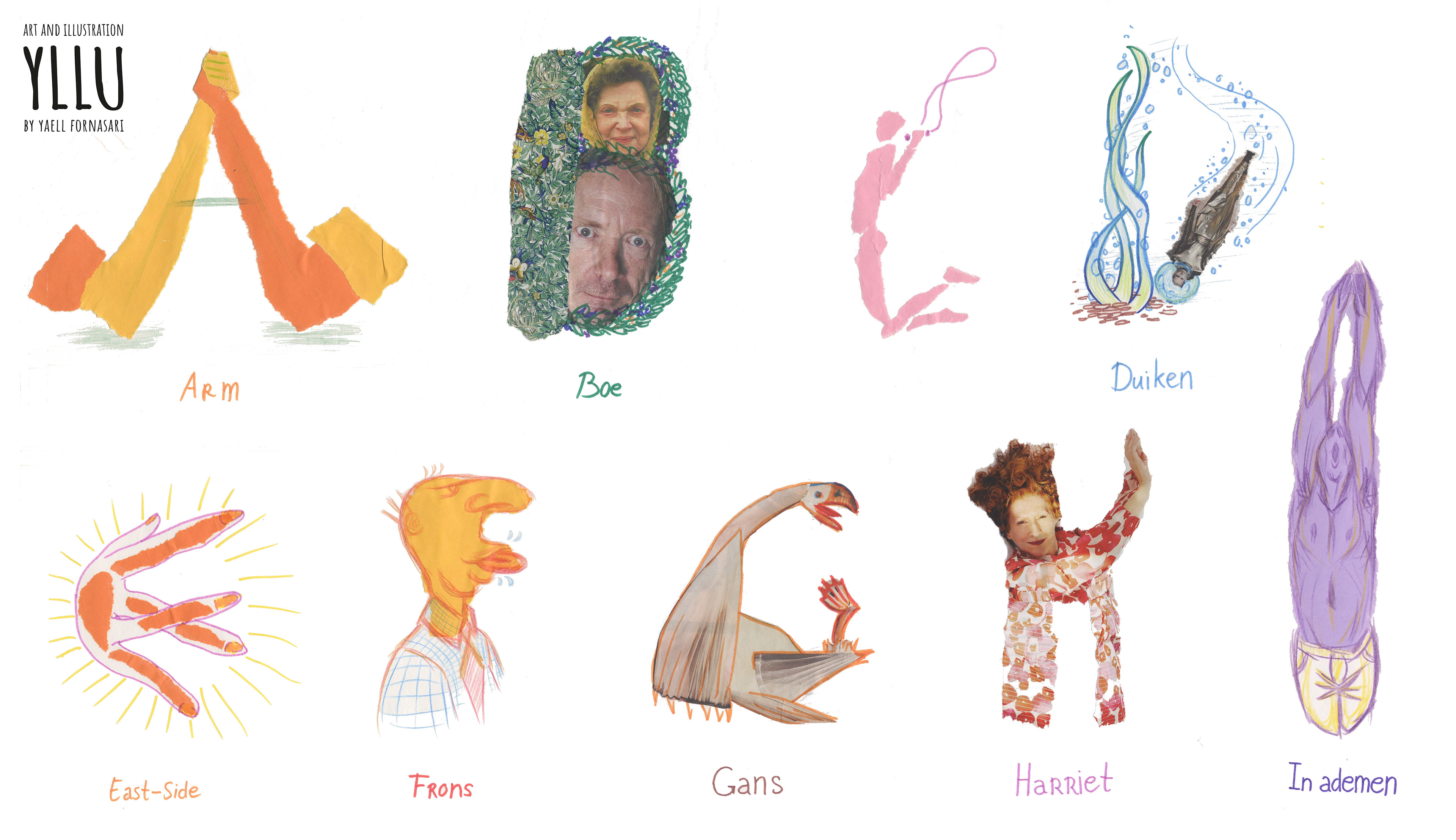 Een aantal stijlexperimenten. Letters en modeltekeningen.