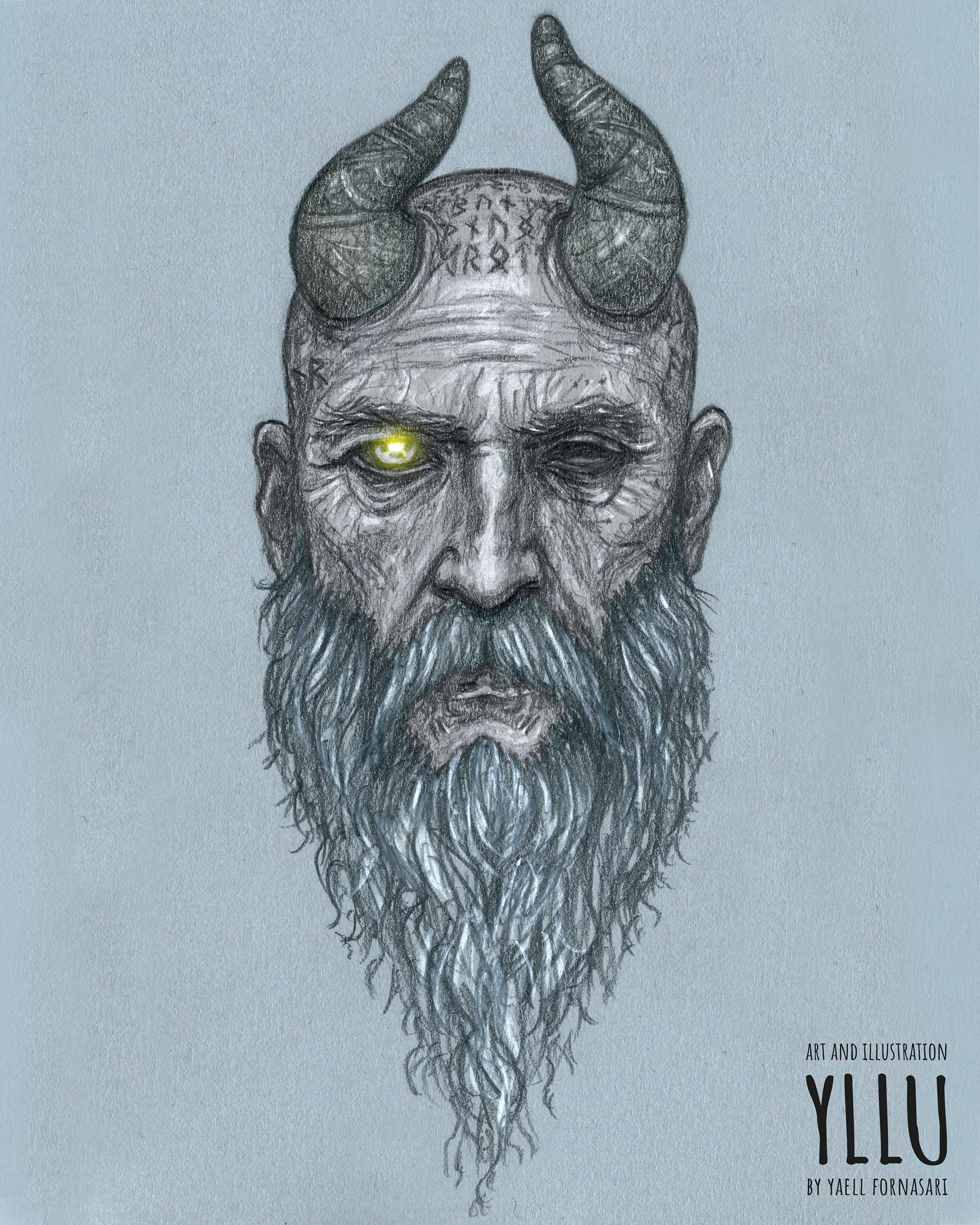 Portret van het karakter Mimir uit het videospel God of War (2018).