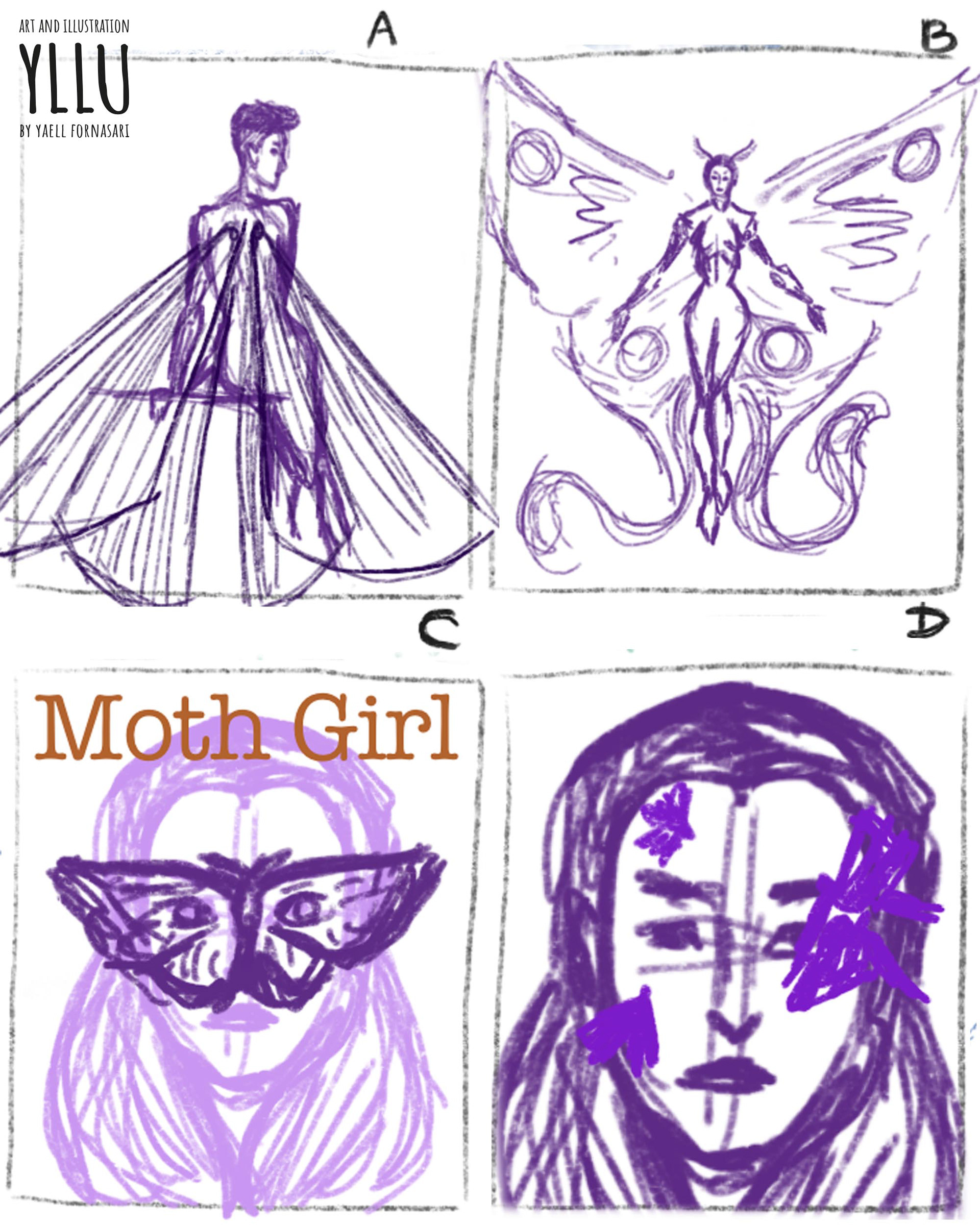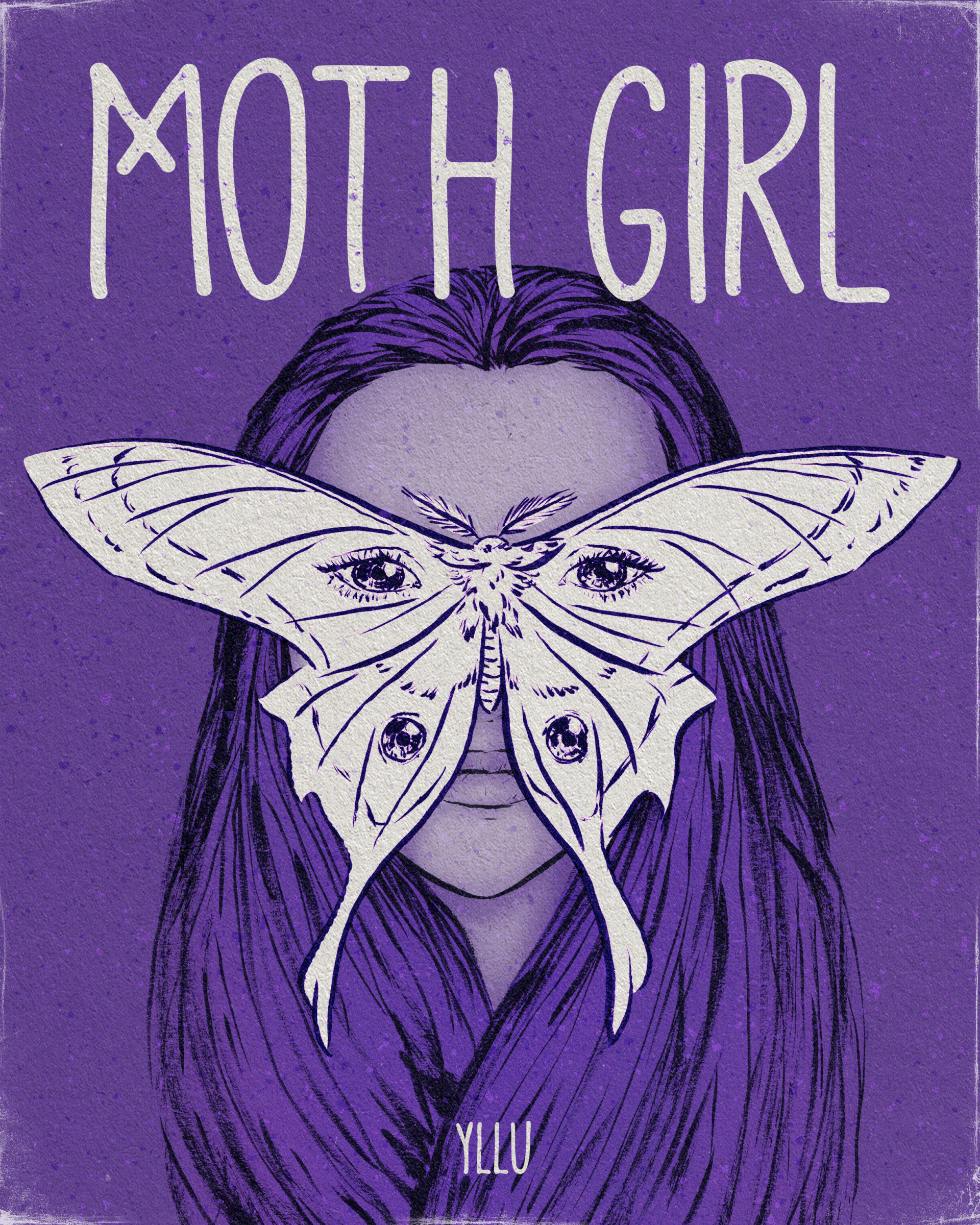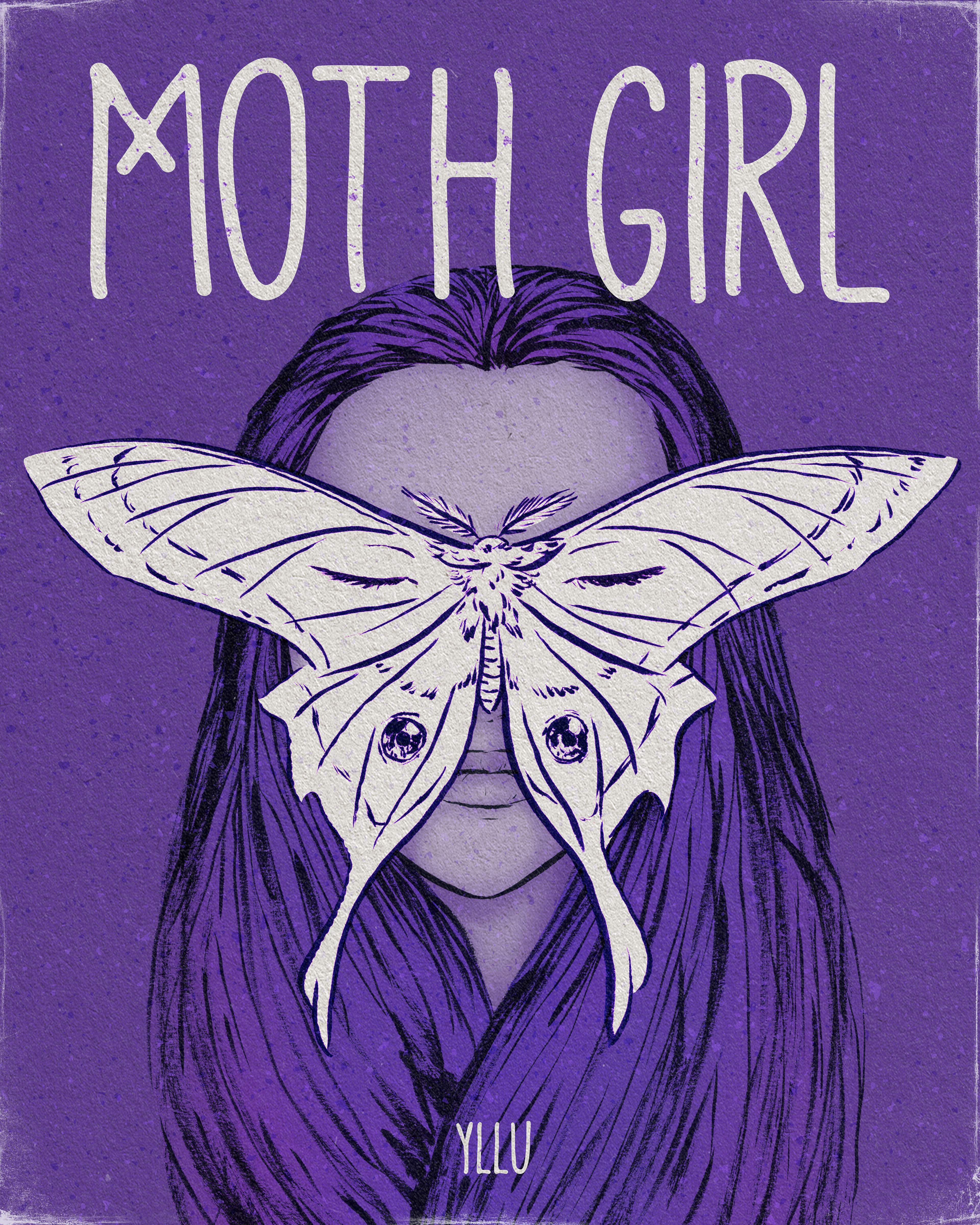 Vrij werk, illustratie gemaakt alsof het een boekomslag is. "Moth girl" was een van de thema's van het creatieve evenement Drawtober.