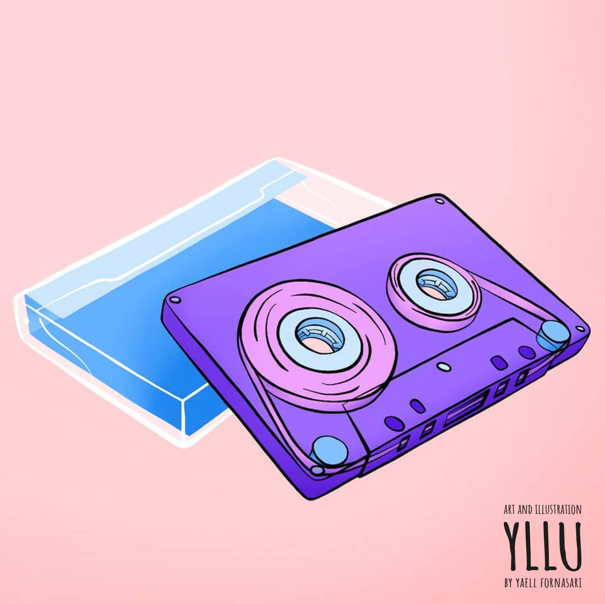 Drie illustraties voor buttons, gebaseerd op de vaporwave esthetiek.